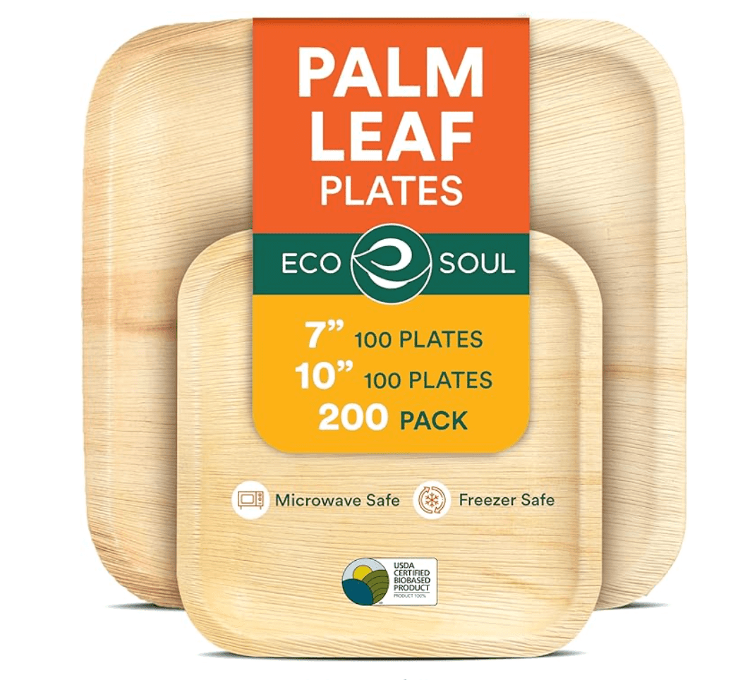 ECO SOUL Compostable 7 & 10 Inch Palm Leaf Square Plates (200 Count) Like Bamboo Plates | Biodegradable | Eco-Friendly, Microwave & Oven Safe - Party Pack
