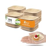Raj Eco Compostable Mini Palm Leaf Plates Like Bamboo Plate Disposable - 4 Inch Square 100 Mini Party Plate, Natural Wooden, Eco-Friendly, Fancy Biodegradable & Disposable Wedding Picnic